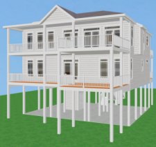 Oceanfront Oasis This 5-bedroom contemporary beach cottage has covered porches and decks on both levels of the front and back of the home to allow for maximum oceanfront enjoyment. This home is designed with an inverted floor plan. The main level of this home has 4 large bedrooms, three full bathrooms, laundry facilities, and an oversized family room, along with access to the front and rear decks. The second floor has a vaulted ceiling atop the great room and the dining area. The great room, which has a direct vent fireplace for heat, also has a wall of sliding doors leading to the covered porch and open deck. The modern kitchen has a large work island, opens to the front deck, and adjoins the dining area. The master bedroom suite has two large closets and a spa bathroom and is privately set to one side of this floor. There are additional laundry facilities, a large owners closet, a powder room, and a private office also on this level. The ground level of this home has stairs leading to the first floor, and abundant parking space. A passenger elevator is also provided. |